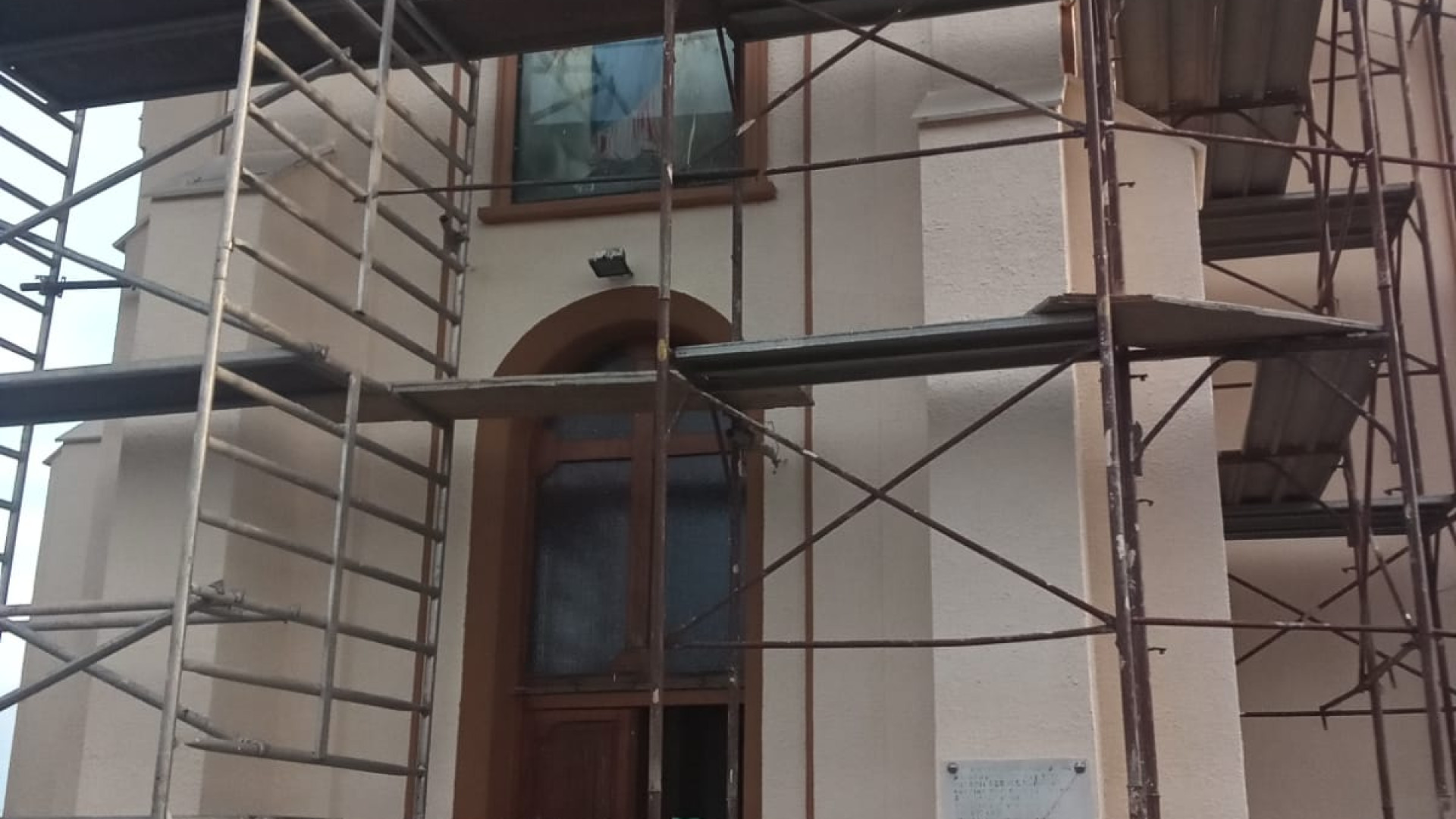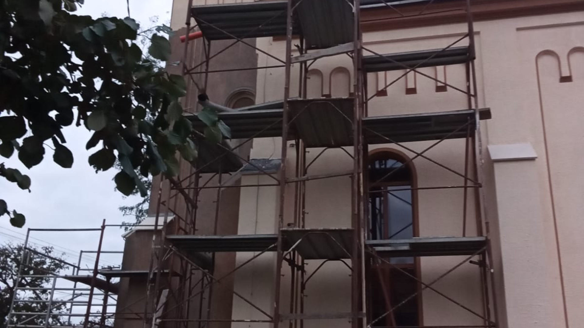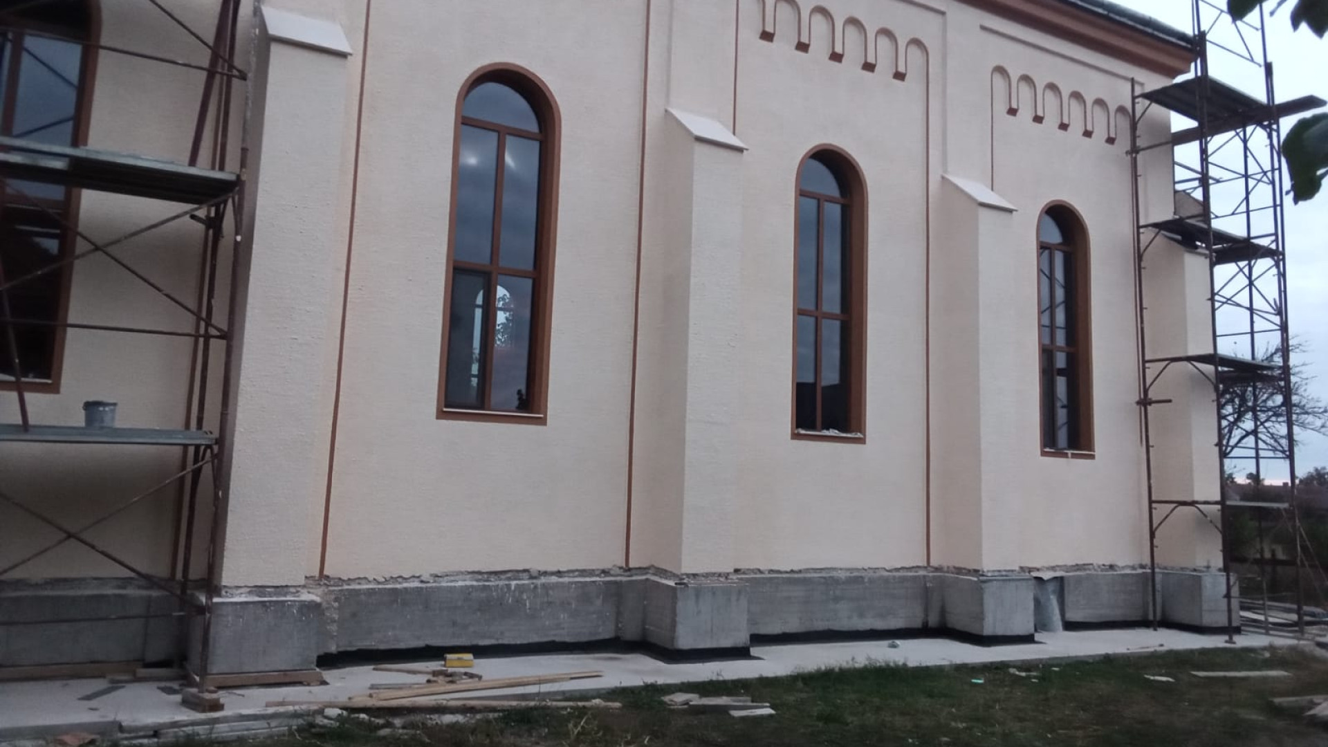 Apoi are loc zugrăvirea  exterioară a pereților în tonul cromatic : - galben – crom- alb recomandat prin avizul Institutului de Patrimoniu, cromatică existentă la construcția bisericilor în secolul XVIII-XIX.
