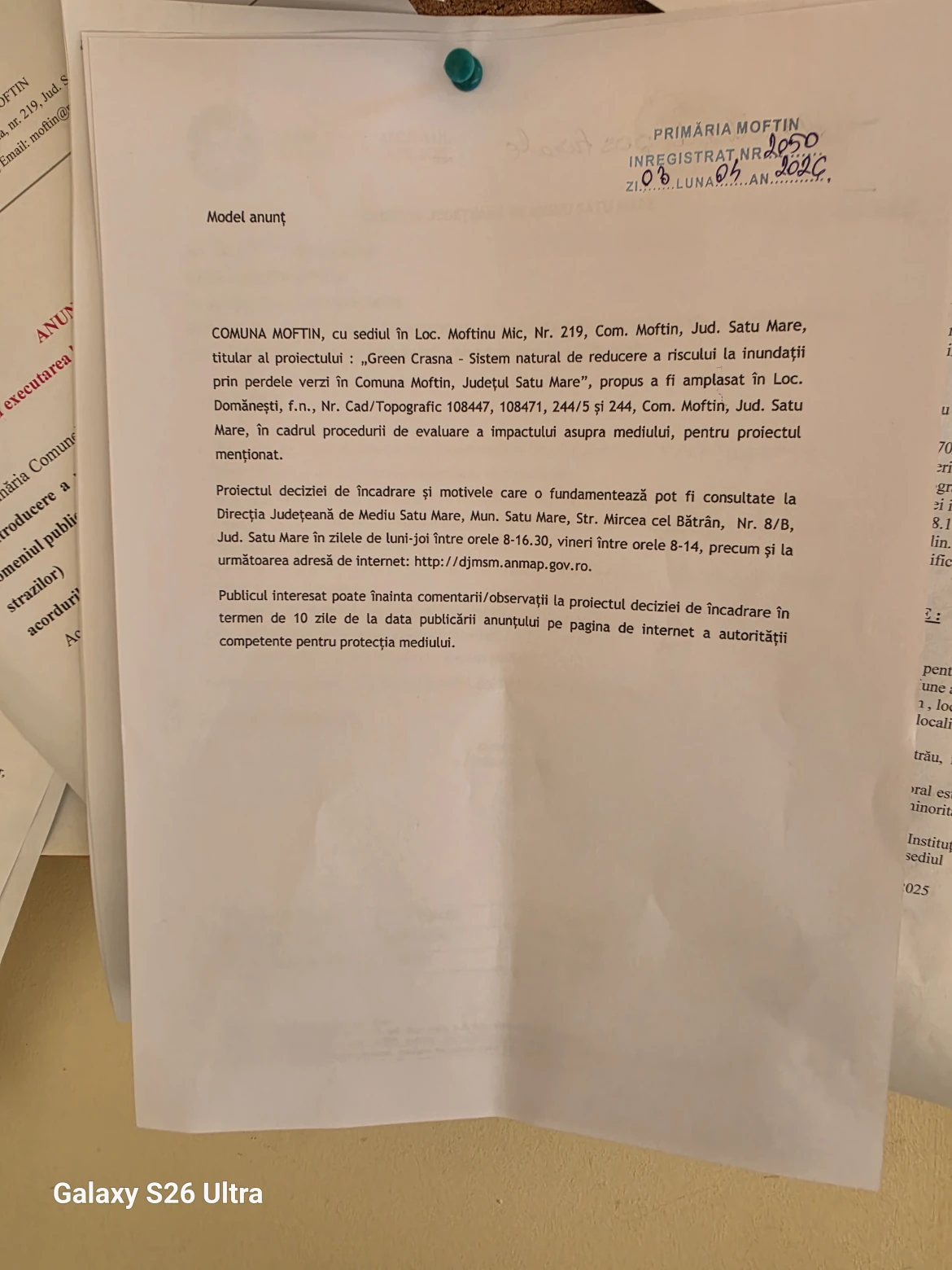 Anunţ privind procedura de impact asupra mediului