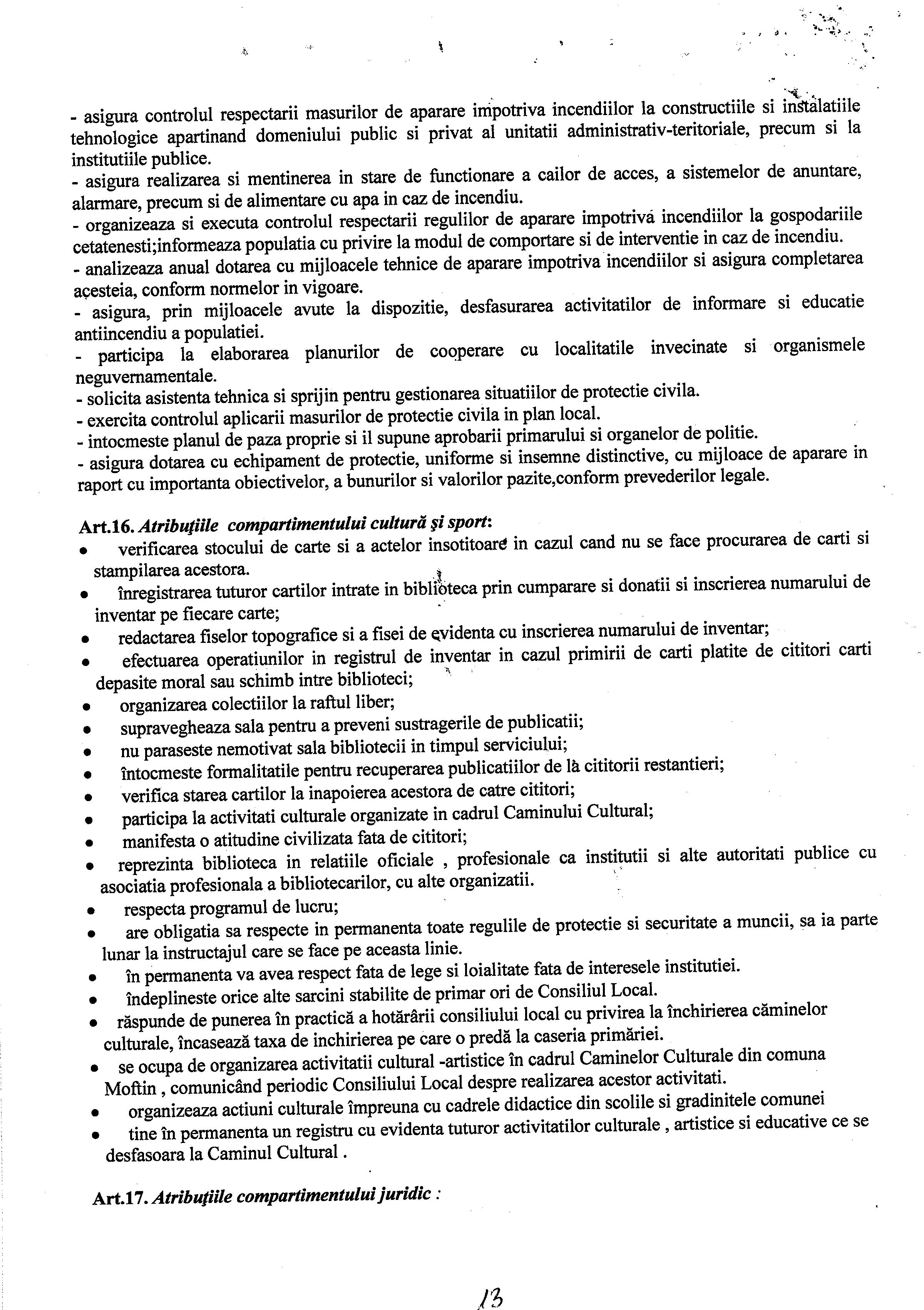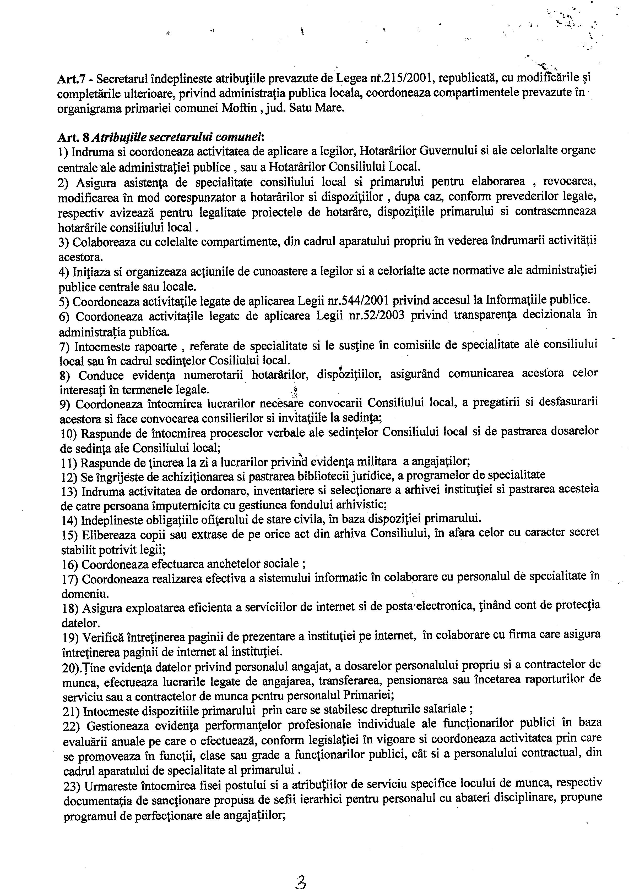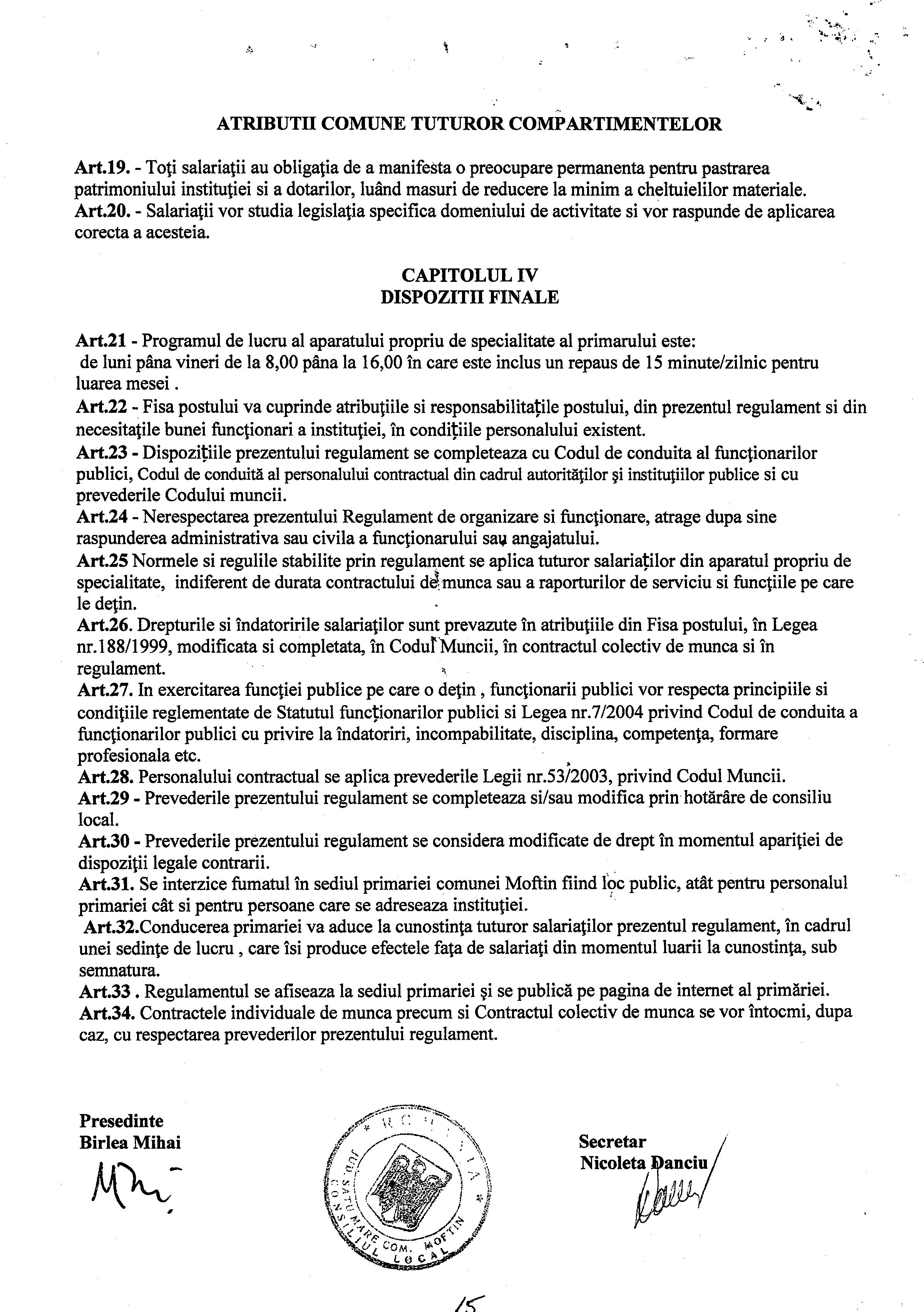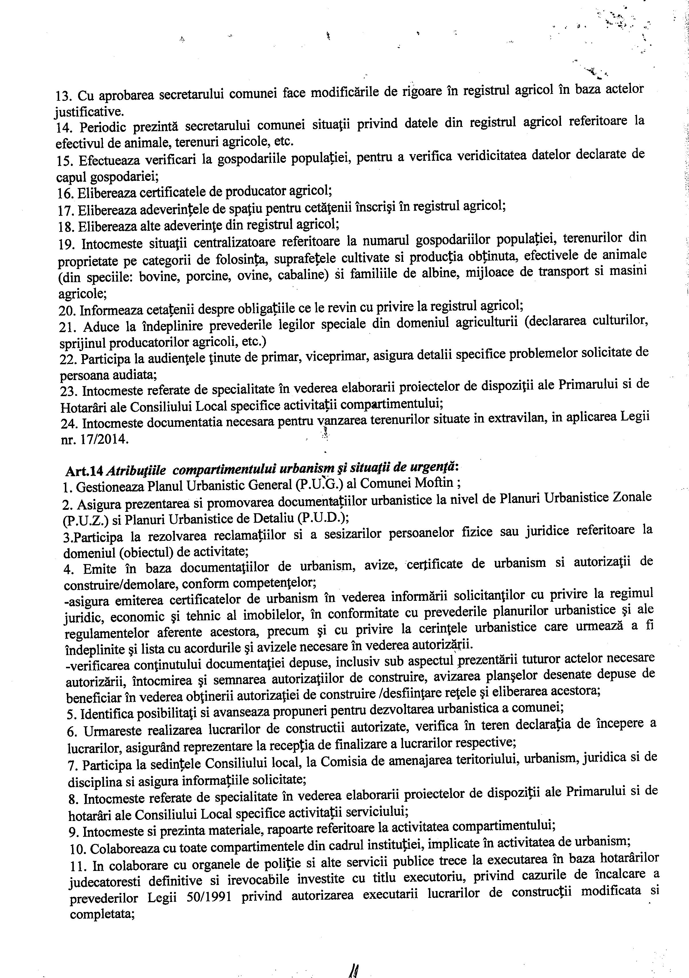 Hot. 57 - aprobare regulament de organizare si functionare al aparatului de specialitate al primarului Comunei Moftin
