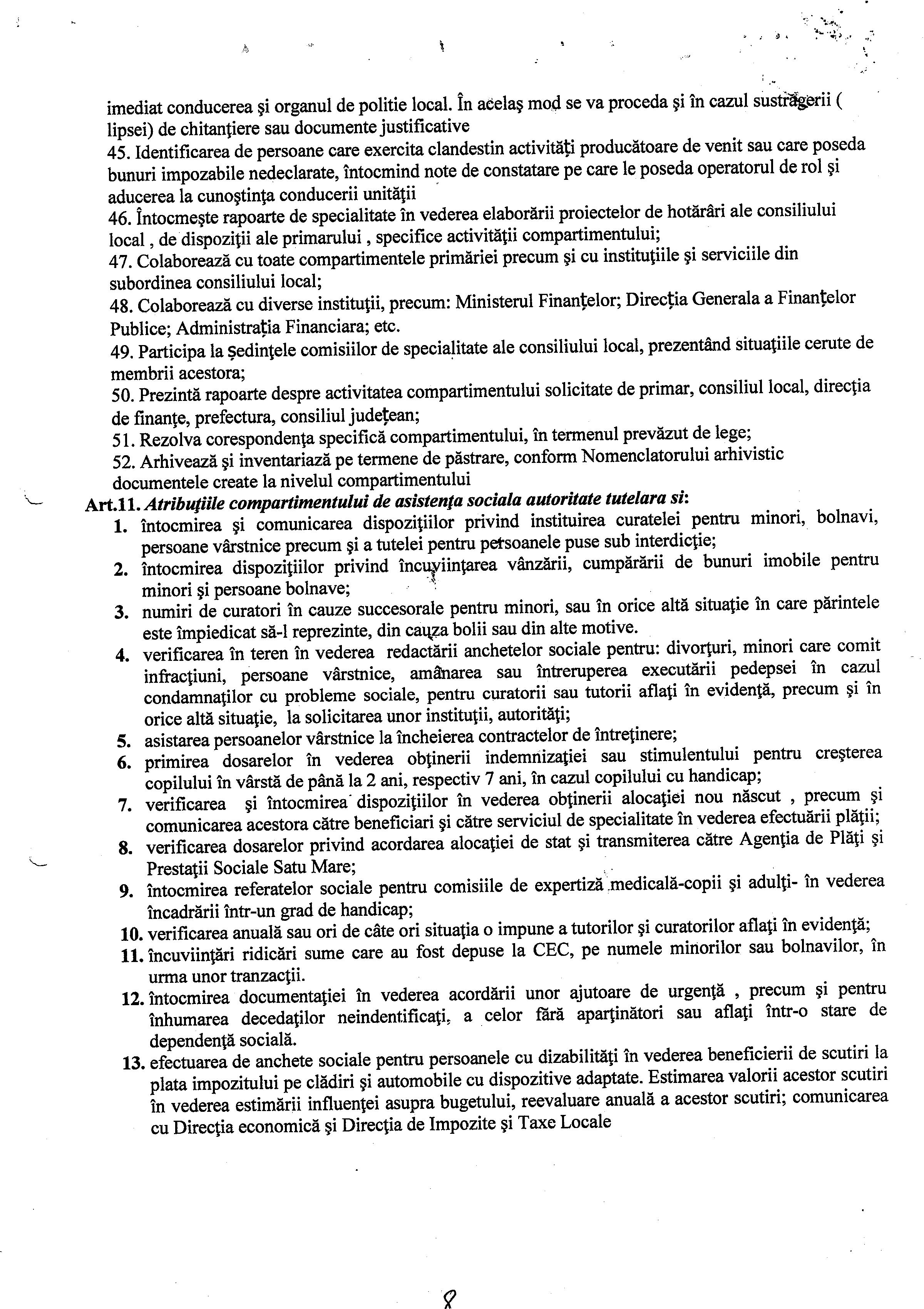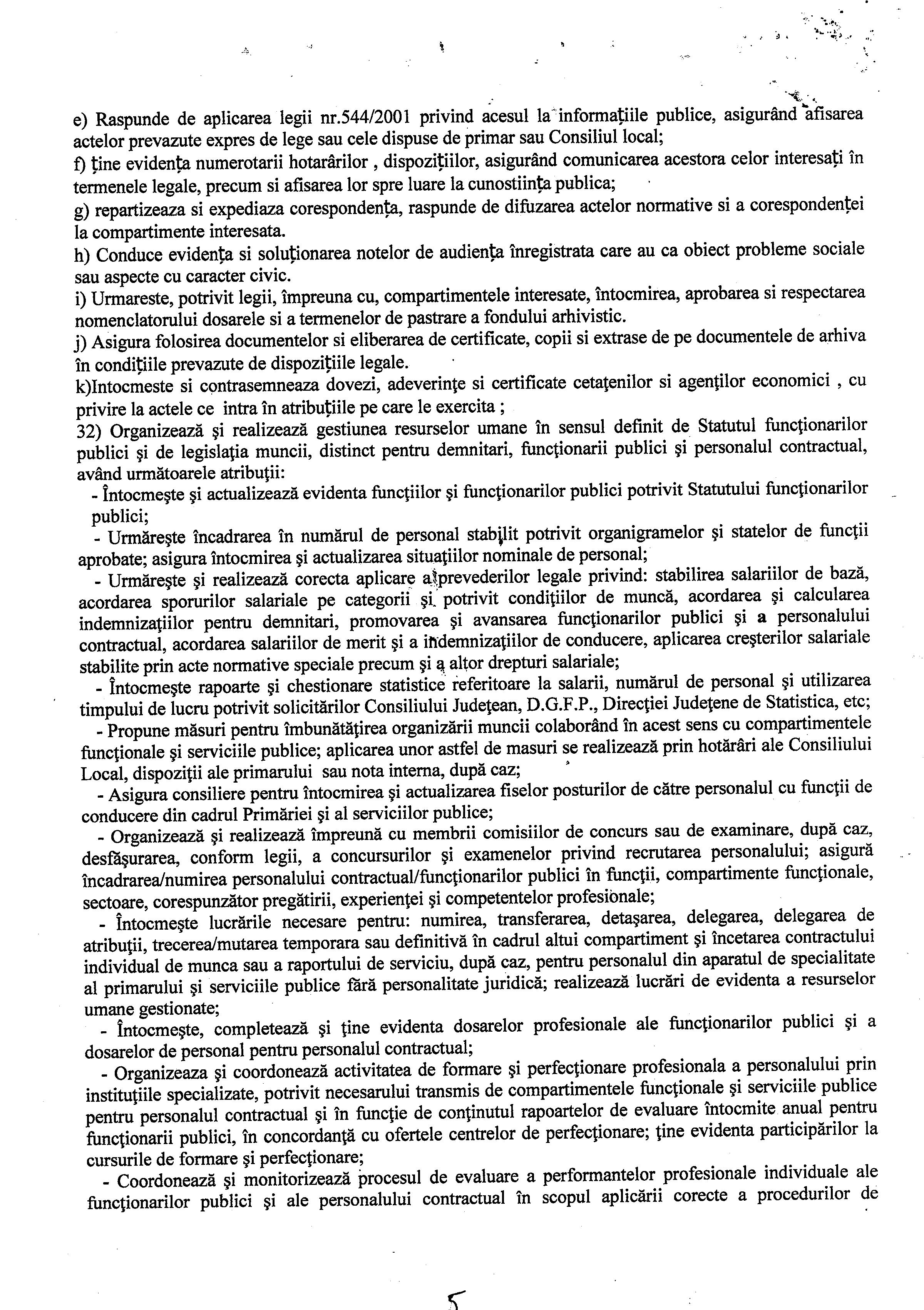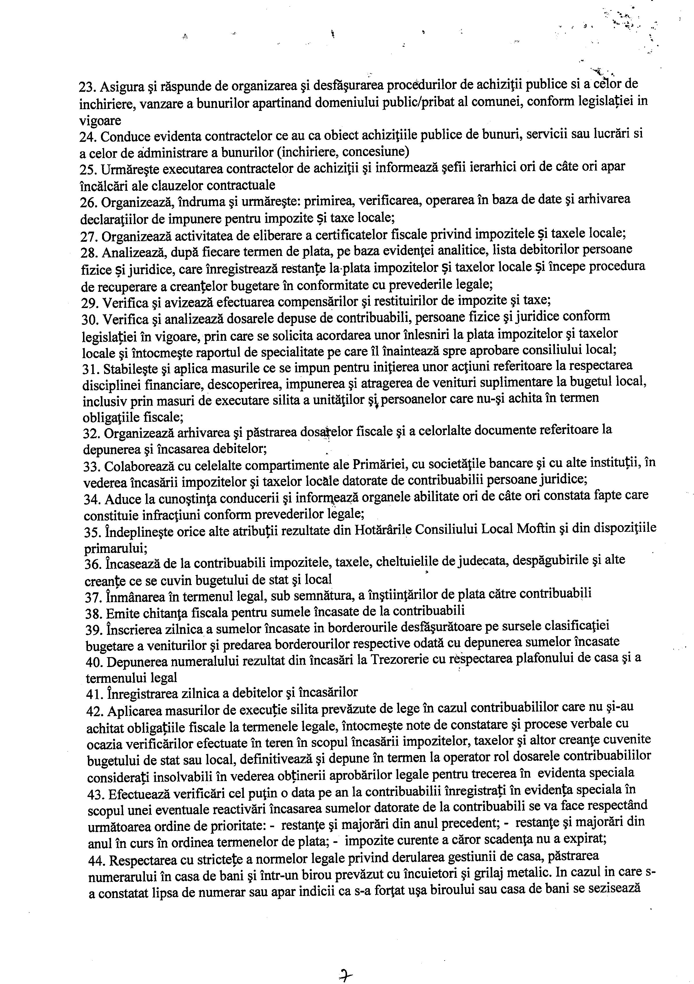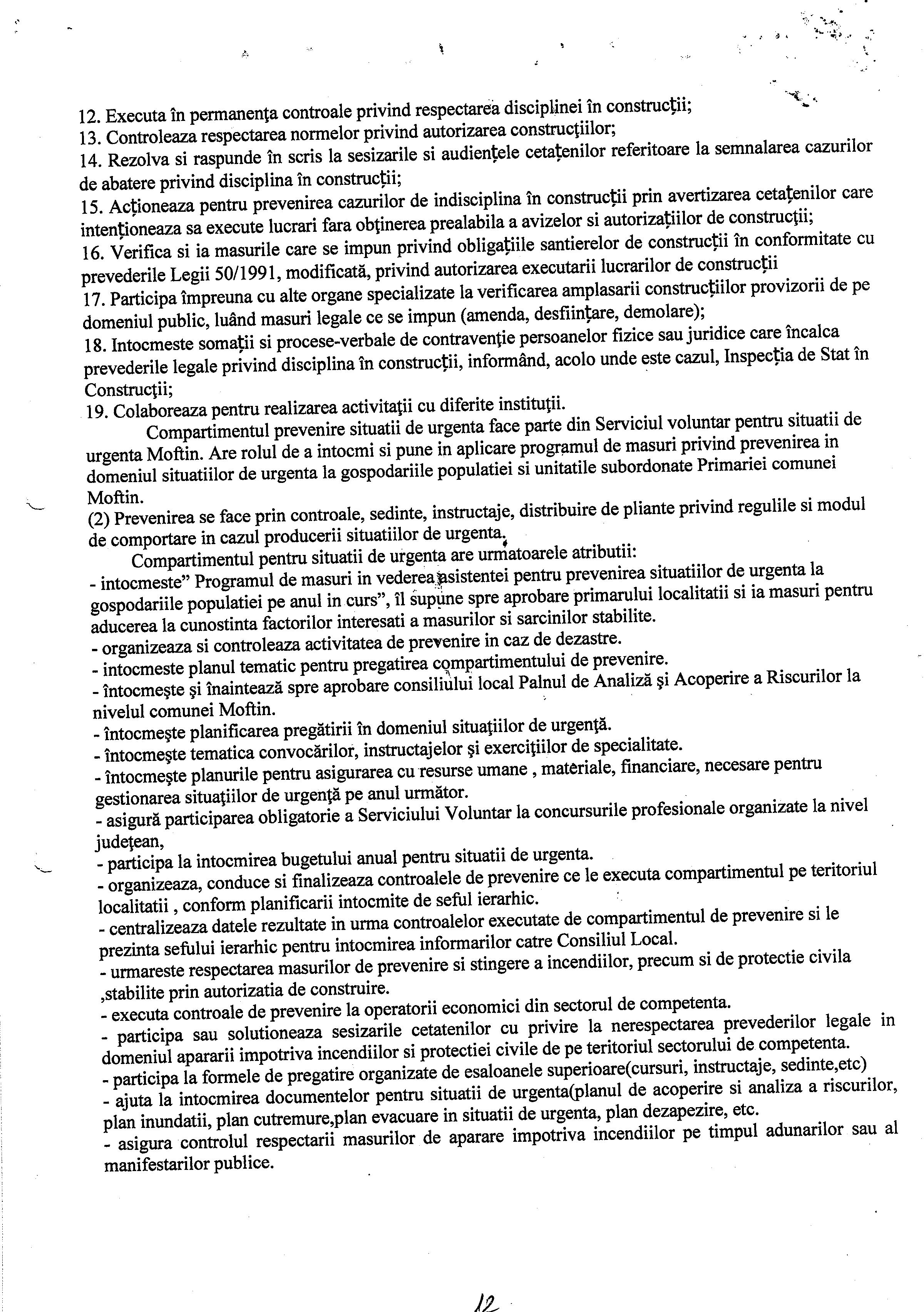 Hot. 57 - aprobare regulament de organizare si functionare al aparatului de specialitate al primarului Comunei Moftin